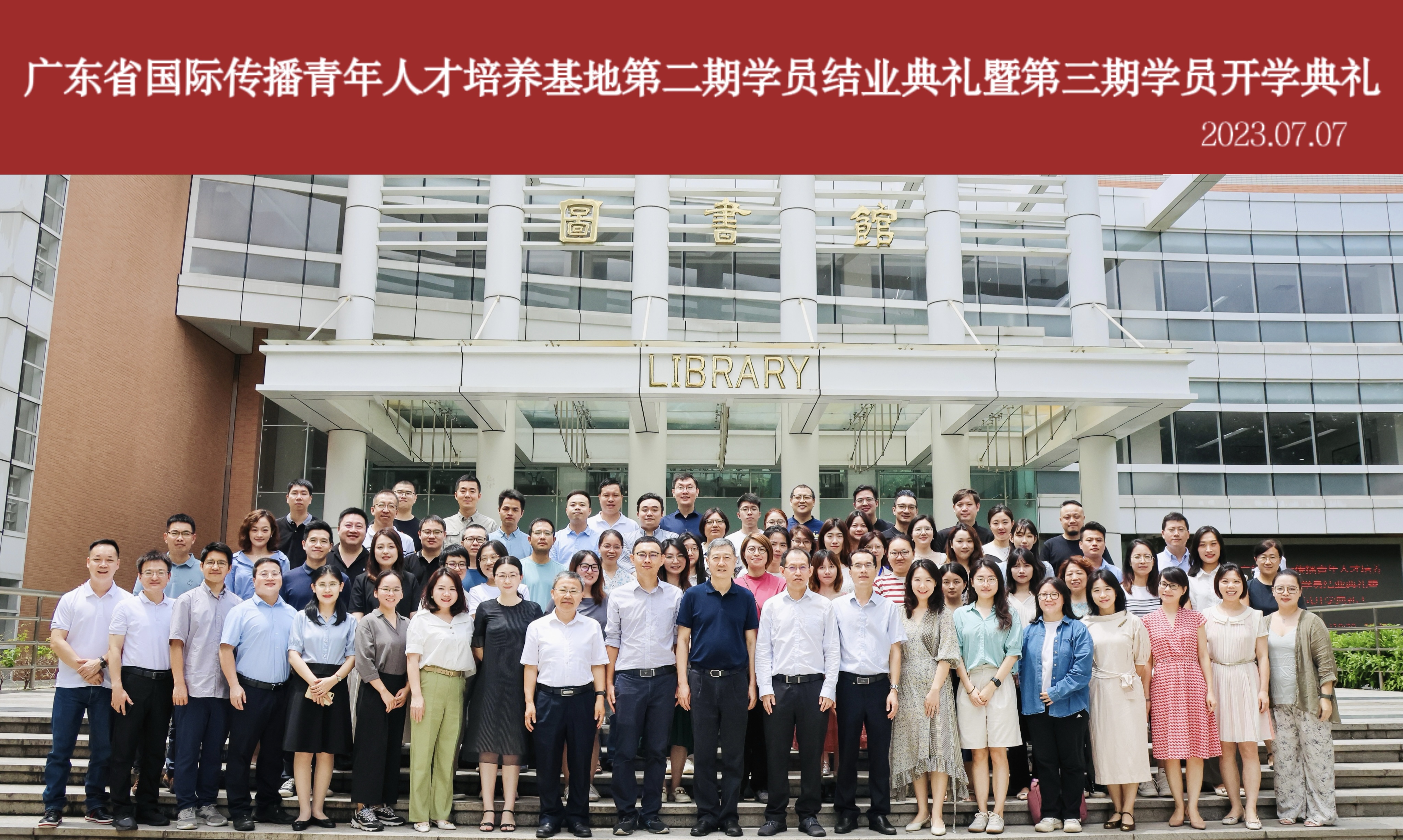 7月7日,广东省国际传播青年人才培养基地第二届学员结业典礼暨第三届学员开学典礼在我校举办。广东省委宣传部二级巡视员陈松就本次培训进行指导、提出要求,我校党委常委、副校长申明浩代表学校致辞。典礼由我校新闻与传播学院院长侯迎忠主持。