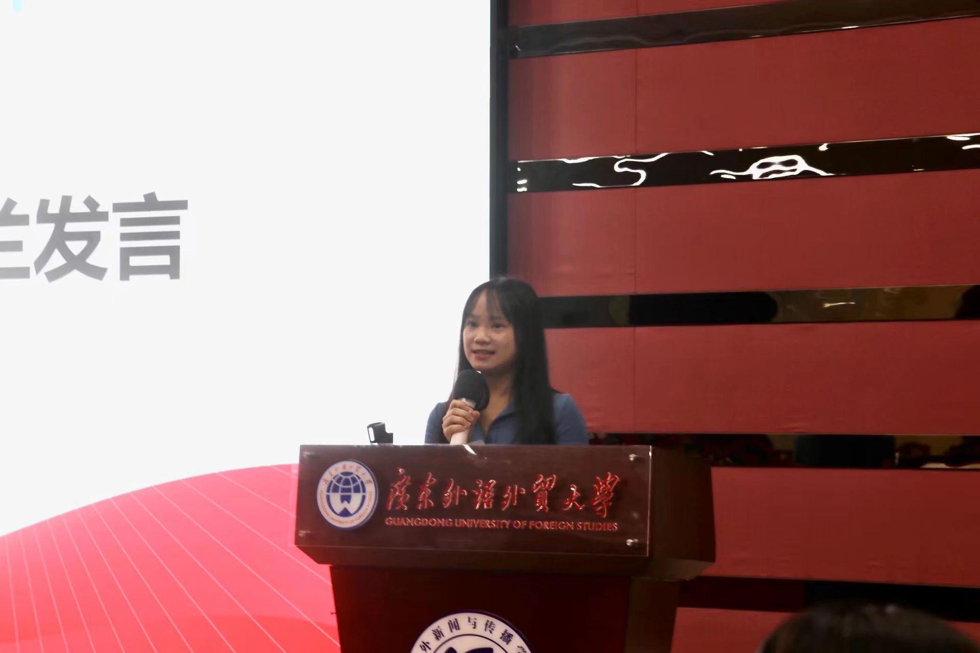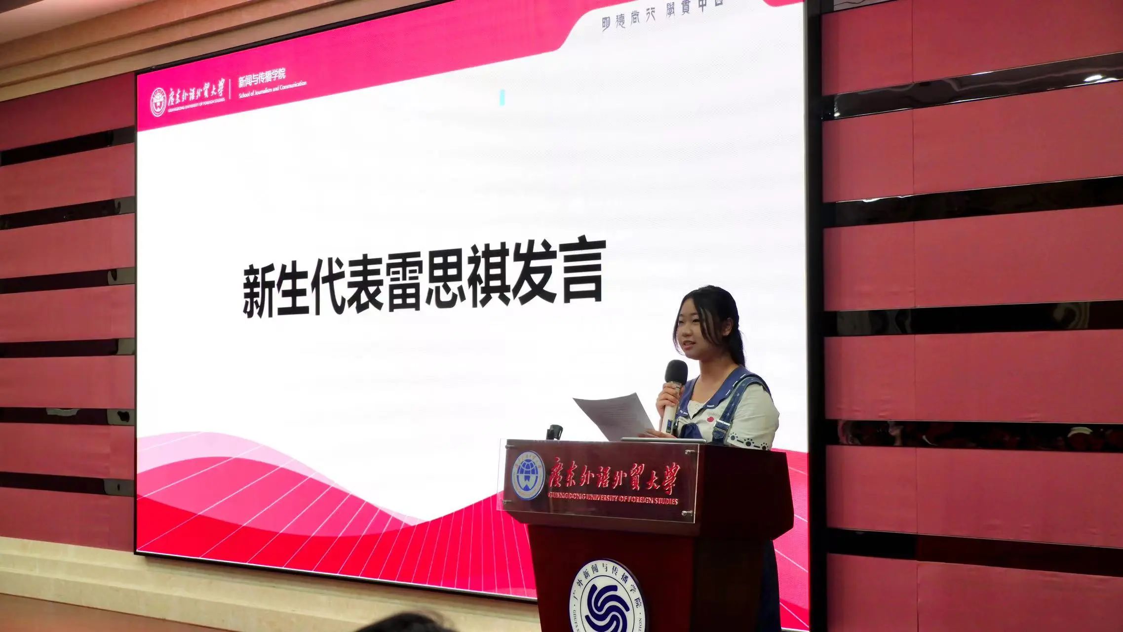 在研究生开学典礼结束后,研究生新生代表郭韦兰向同学们介绍了她本科期间在广外新闻学院所收获的经验,她表示在未来还会继续保持求知探索的热情,不断完善自身各方面的能力。如今是一名研究生的她,希望和同学们一起进步,一起成长,为讲好中国故事、传播中国好声音贡献一份自己的力量。