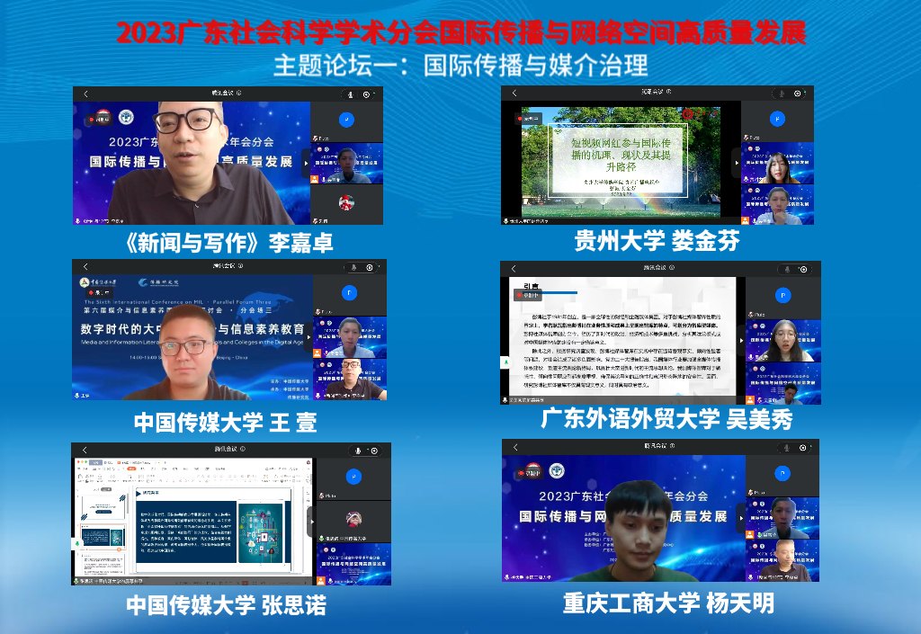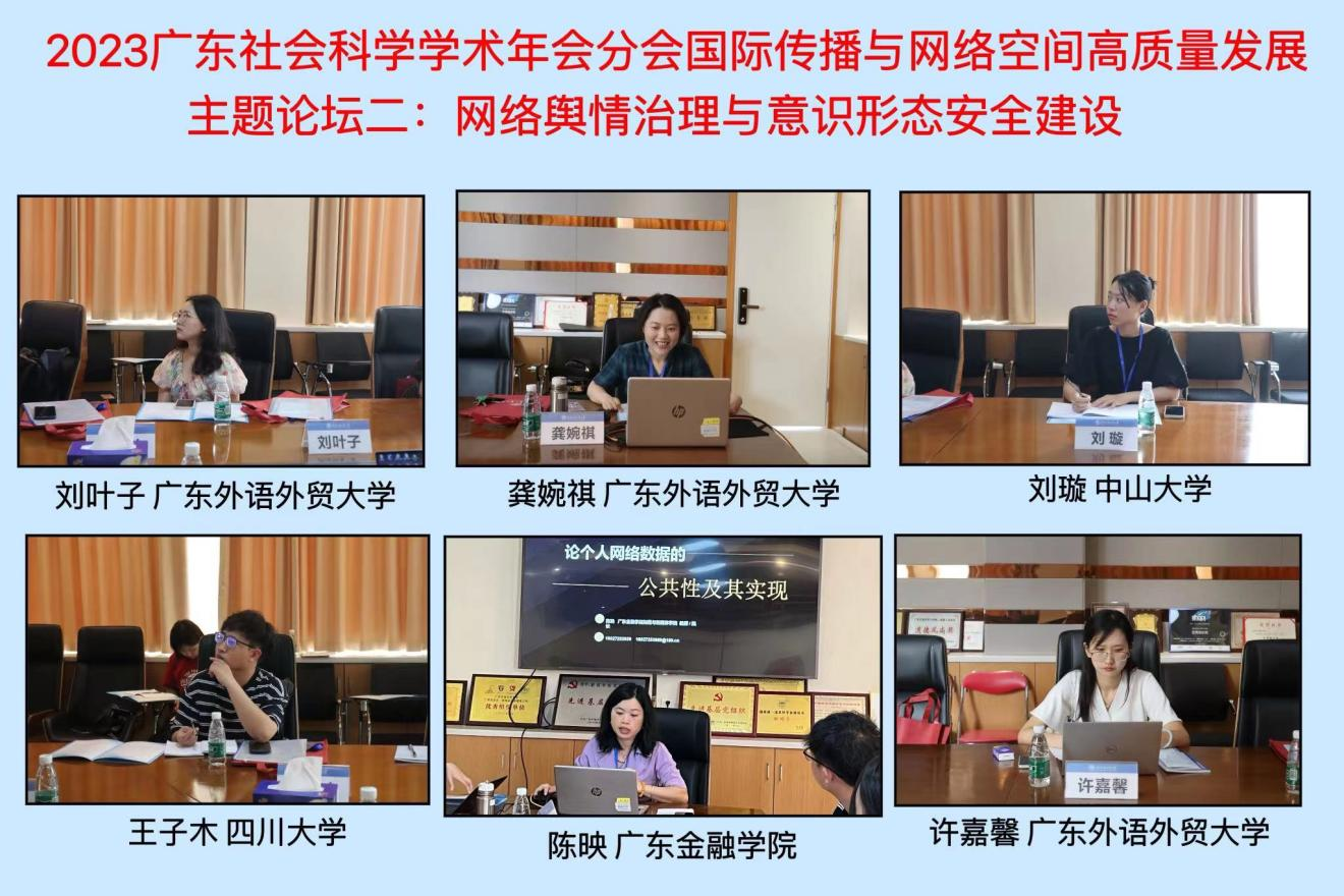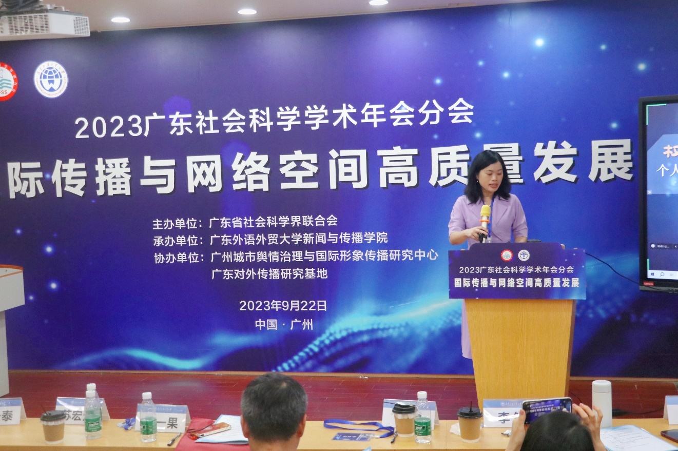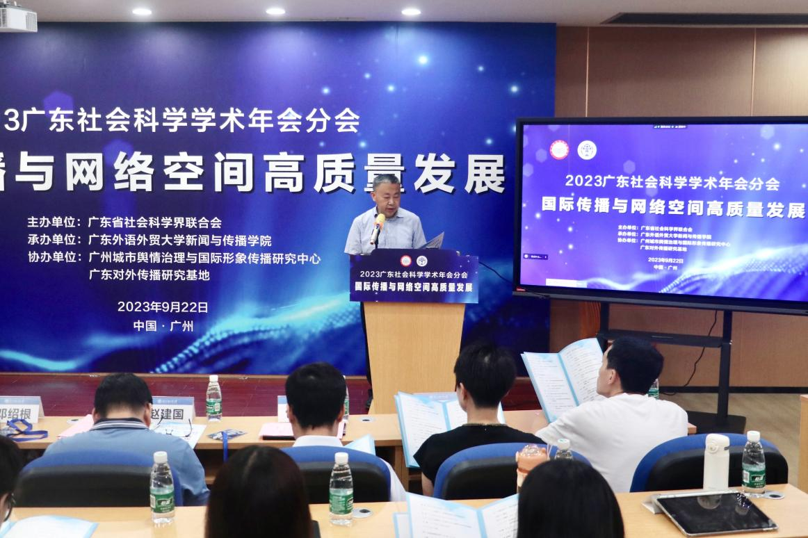 为深入学习贯彻习近平新时代中国特色社会主义思想和党的二十大精神,顺应传播行业新形势,不断促进网络空间治理现代化,以国际传播高质量发展推动文化自信自强,9月22日,2023广东社会科学学术年会——“国际传播与网络空间高质量发展”分会以线上线下相结合的方式举办,在广东外语外贸大学设线下主会场。