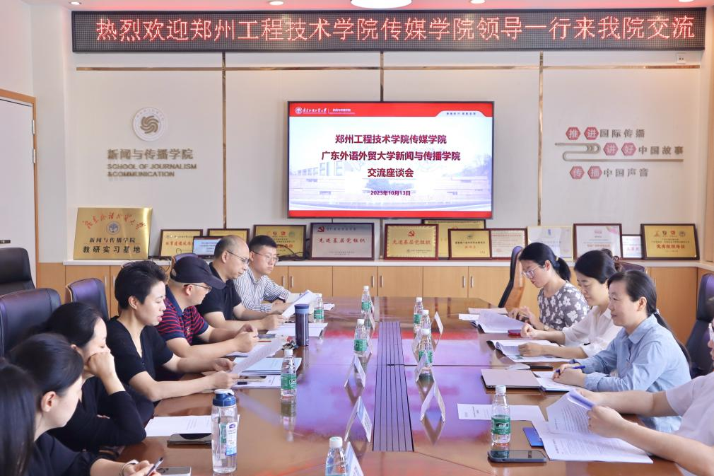 10月13日上午,郑州工程技术学院传媒学院副院长丁雪艳一行来访我院调研交流。座谈会在大学城校区教学楼B403举行,双方围绕专业建设、人才培养、科学研究、实践教学等方面进行了深入的交流。学院副院长罗坤瑾主持座谈会。