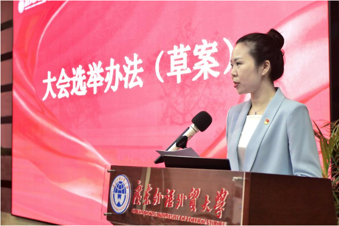 党委副书记涂颖宣读校党委组织部关于新闻与传播学院党委换届候选人预备人选的批复,并宣读大会选举办法(草案)。