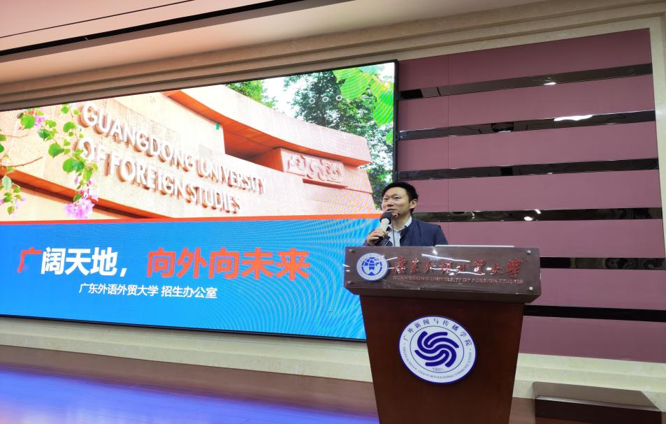 宣讲会上,全体人员一同观看了广东外语外贸大学宣传片,龙川第一实验学校的师生对广外的发展历程、学科建设沿革、国际化办学特色等学校概况有了更加深入的认识和了解。