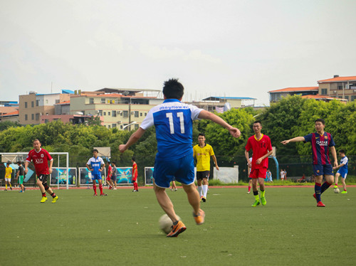 6月13号下午四点,新闻学院院庆系列活动之一的校友足球赛在广外南校区的假草场正式开展。对垒的双方分别是新闻学院的校友队和在校生教职工联队。经过90分钟的激战,在校生教职工联队以4-3的总比分击败了校友队。