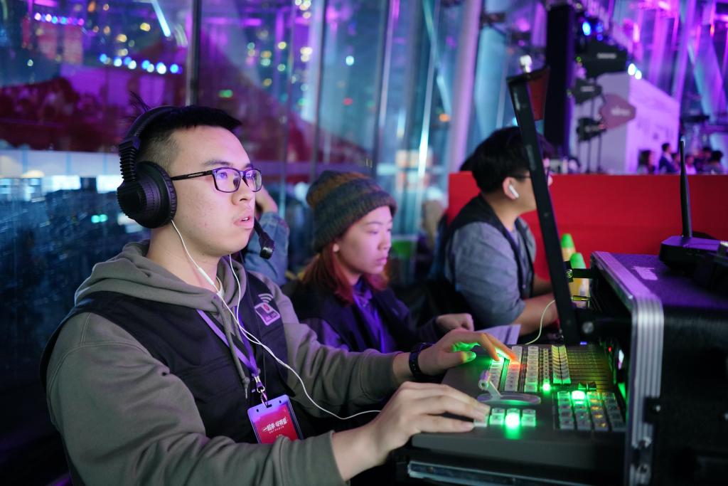 大运会直播节目副导播,广告1601班 张旭滨(右)