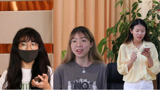学生党员黄韵淇、谭霭妍、陈闫龙雨踊跃发言