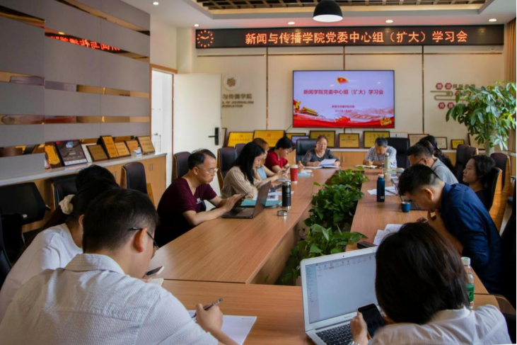 2022年5月9日上午,新闻学院在教学楼B403召开党委理论学习中心组(扩大)学习会,深入学习习近平总书记在中国人民大学考察时的重要讲话精神,学院党委委员、党政领导班子成员、院长助理、系(中心)主任、办公室主任、党支部书记、组织员、辅导员参加学习。会议由学院党委书记郝建萍主持。
