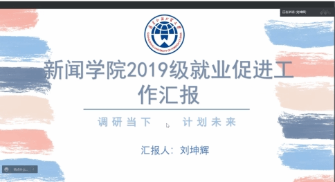 辅导员刘坤辉根据对2019级本科生就业创业情况调研,从学生基本情况、现状分析、学生需求和就业促进工作方案等方面,介绍了2019级就业促进工作的相关情况。并将进一步开展就业指导与培训,全面提升学生就业能力。