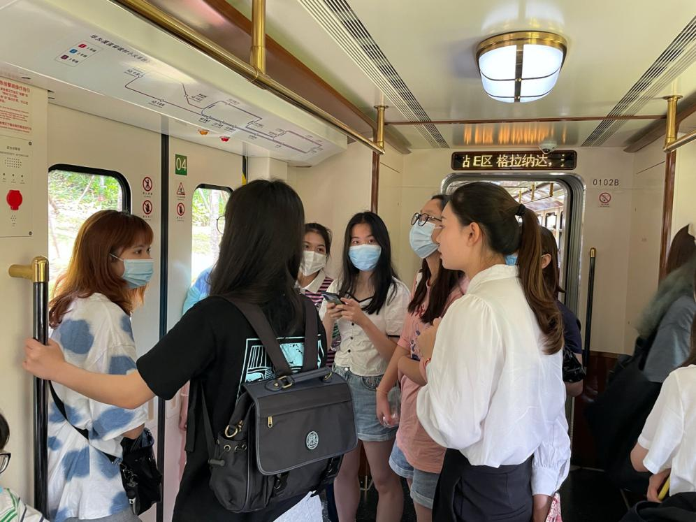 学生与华为工作人员在小火车上讨论交流