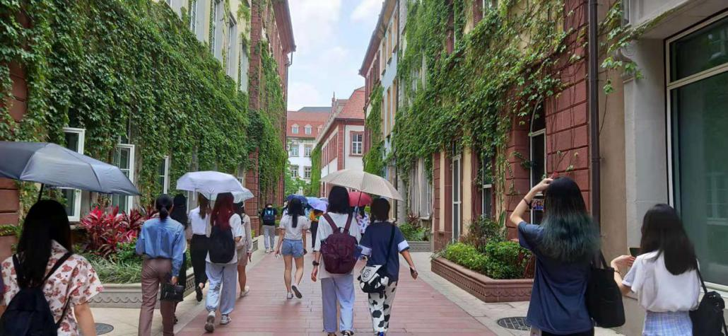 坐落于东莞的溪流背坡村是华为的研发中心,始建于2015年,总占地面积1900亩,由12座不同风格的欧洲经典小镇打造而成,整个园区内共有100多栋研发楼。在华为工作人员的带领下,同学们参观了坐落于溪流背坡村的欧式办公社区。有的社区设计参考了英国牛津大学的建筑风格和特征,有的参考了比利时布鲁日连绵小建筑物的街区特点,还有的借鉴了德国历史悠久的海德堡大学。在工作人员的介绍中,同学们对华为的创业故事、企业精神、工作氛围有了更加深入的了解。