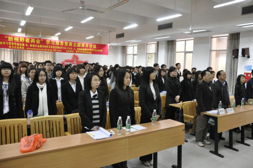 新闻学院“‘新视野看两会’学习报告竞赛”主题党日活动自三月开始至今,先后经历了各支部开展两会学习及个人自主学习,所有参与者以匿名的方式对作品的初评,学院党委评出获奖作品的环节,贯穿对主题内容即“两会”的交流学习。并通过QQ群及博客等方式展开对“两会”深入的交流与探讨。在本场获奖作品展示暨学术交流报告后,还将会有校道的获奖作品展示。