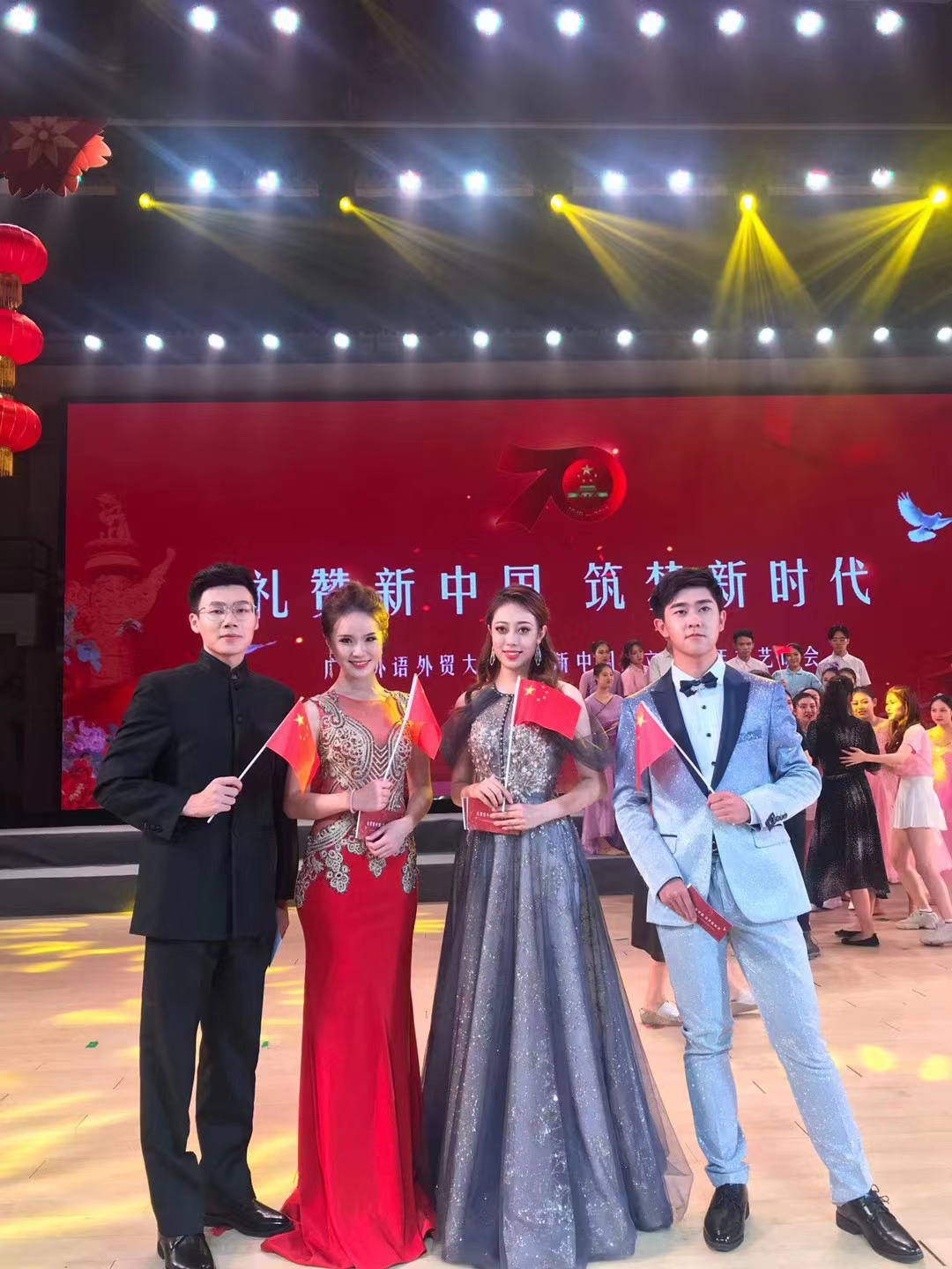 广外播主学生邓毅成(右1)王伊雯(右2)王怡兰(左1)黄若雨(左2)分获第十四届广东省大学生主持人大赛一、二、三等奖