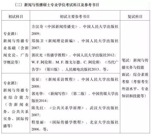 考生参加全国硕士研究生统一入学考试。初试科目共四门:政治理论、外语、专业课1、专业课2。初试达到复试分数线的考生参加复试,复试由新闻与传播学院组织。