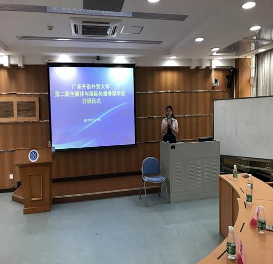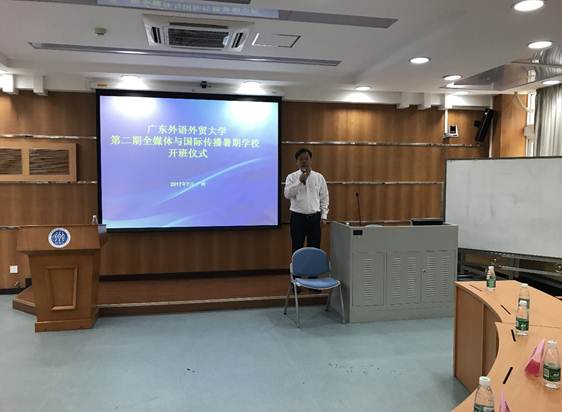 7月4日上午,2017年广东外语外贸大学第二期全媒体与国际传播暑期学校在广东外语外贸大学北校区103教室举行开幕仪式。本次暑期学校立足广东,由广东外语外贸大学主办,面向国内高校招收60名新闻传播学和相关学科优秀本科生,围绕全媒体环境下如何加强我国国际传播能力建设这一中心议题,开展理论研讨、实践研究与案例分析,旨在为新闻传播学及其他相关学科优秀本科生提供一个学术交流与创新思维的平台。