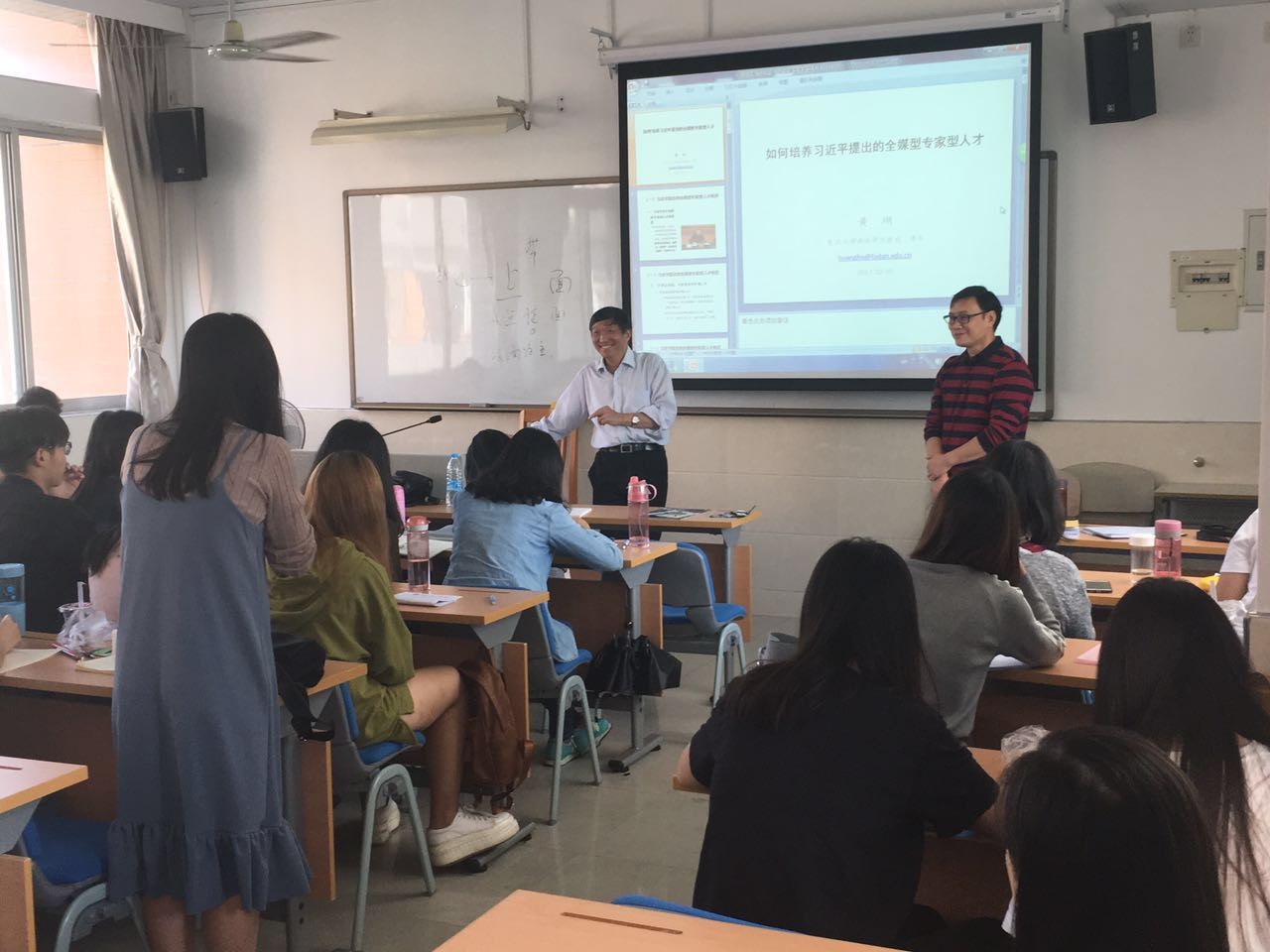 10月30日上午,复旦大学新闻学院博士生导师黄瑚教授受邀做客广东外语外贸大学,以《如何培养习近平提出的“全媒型专家型人才”》为题给同学们带来了一场生动活泼的讲座,并与同学们探讨了跨专业人才的现实意义,强调当代媒体人要努力争当复合型专家型人才。