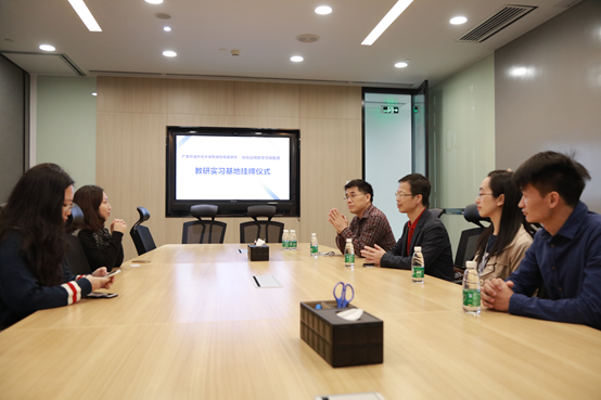 为进一步探索校企深度合作,加强专业技能实践训练, 11月23日下午,副院长何国平、副书记黄石胜、广告专业教师陈秀华和15级辅导员谢露诚等一行人前往华邑品牌数字营销集团广州总部举行教研实习基地挂牌仪式,并商谈下一步校企合作项目。