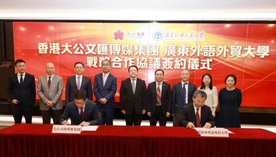 5月10日下午,我校与香港大公文汇传媒集团签署战略合作协议。香港大公文汇传媒集团董事长、总编辑李大宏,我校党委常委、副校长刘海春出席签约仪式。双方将在人才培养、科研合作、对外传播、实习就业等方面开展全面合作,携手打造内地高校与爱国爱港传媒机构战略合作和融合发展的新典范,将充分发挥多语种新闻传播优势,共同讲好中国故事、讲好大湾区故事、讲好香港故事。