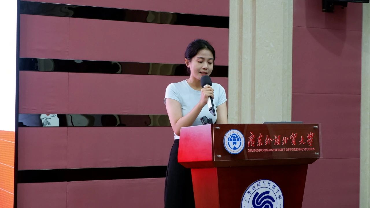 在研究生开学典礼结束后,研究生新生代表郭韦兰向同学们介绍了她本科期间在广外新闻学院所收获的经验,她表示在未来还会继续保持求知探索的热情,不断完善自身各方面的能力。如今是一名研究生的她,希望和同学们一起进步,一起成长,为讲好中国故事、传播中国好声音贡献一份自己的力量。