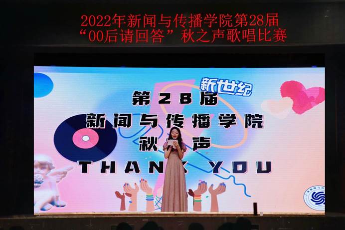 本网讯10月26日晚,新闻与传播学院2022年第二十八届“秋之声”歌手大赛在学生活动中心顺利举行。学院党委副书记黄石胜出席本次比赛,校歌队成员陈雅欣、黄定聪、谢峰担任比赛专业评委。比赛中,选手们八仙过海,各显其能。那厢你方唱罢,余音绕梁;这厢我刚登场,缓缓抒情。最终,肖安喆、汪健、方秋岚分获冠、亚、季军。