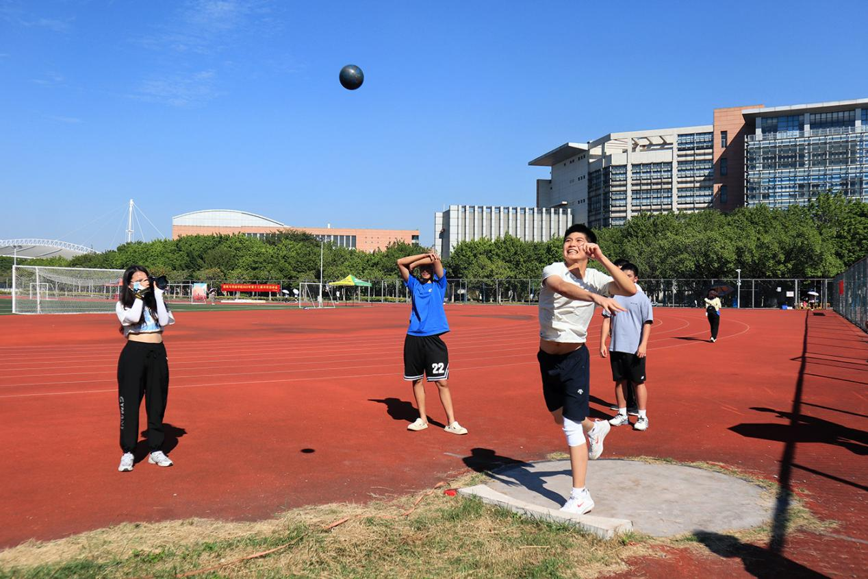 对于多数选手来说,三级跳远是一项从未尝试过的体育运动。在了解规则之后的试跳环节,选手们勇敢尝试、挑战自我。正式环节中,选手们渐入佳境,徐宇帆第一跳因小小的失误而成绩无效,但他在第二跳中以9.35米的佳绩脱颖而出;第三跳时,他凝神聚力,助跑、单脚跳、跨步跳、跳跃一气呵成,突破自我获得了10.8米的优异成绩。