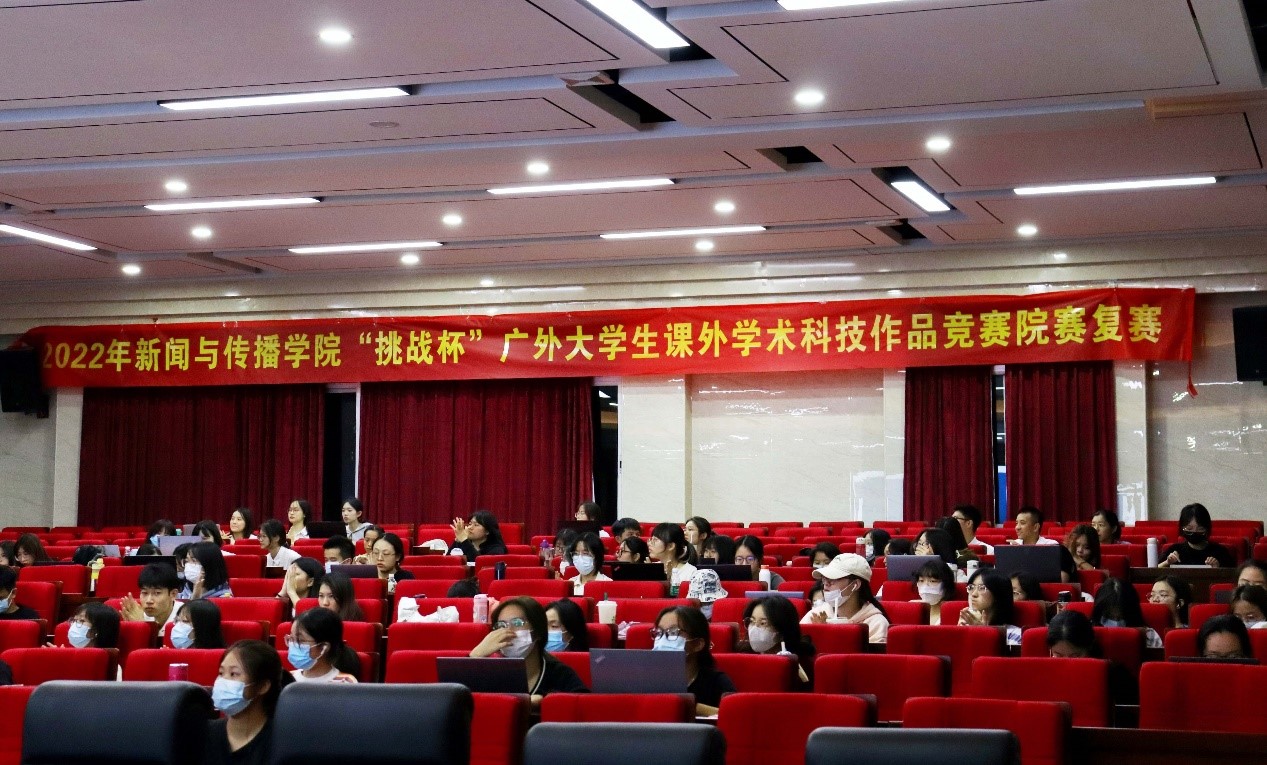 本网讯10月19日晚,2022年“挑战杯”广外新闻学院大学生课外学术科技作品竞赛复赛在教学楼C201举行。华南师范大学教育信息技术学院院长张学波、广州体育学院传媒学院院长肖灵、暨南大学新闻与传播学院副院长曾一果、我院副院长朱颖担任本次比赛评委,17支队伍从初赛中脱颖而出的队伍就各自作品进行展示和答辩。