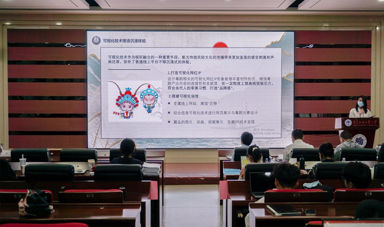 在注重文化传播方面,好多人队就粤剧文化传播话题,对交互模式后疫情时代粤剧传播新路径展开研究。熊猫护卫队选取对外文化传播主题,以YouTube账号iPanda为例,对符号学视域下熊猫频道对外传播策略进行研究。选手们将文化传播与现实案例相结合,获得了评委的赞扬。