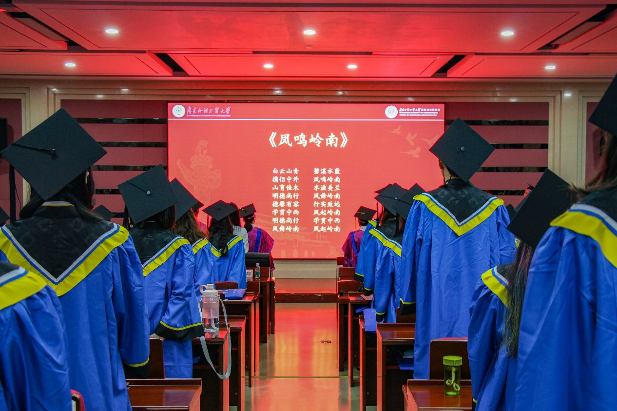 毕业典礼在悠扬的校歌《凤鸣岭南》中落下帷幕。青春未散场,广外新传人将怀揣赤子之心,带着母校和老师同学的祝福,奔向下一个远方。愿同学们此去繁花似锦,再相逢依然如故。