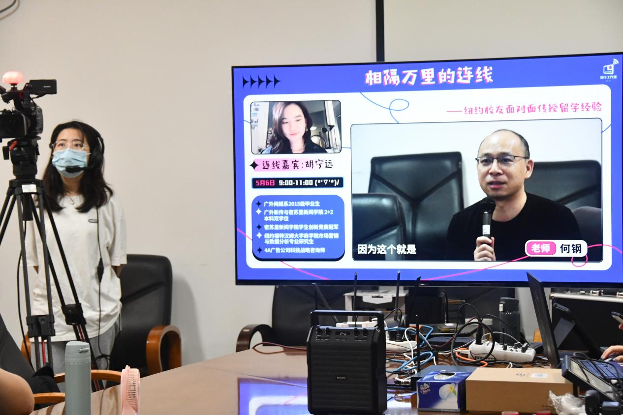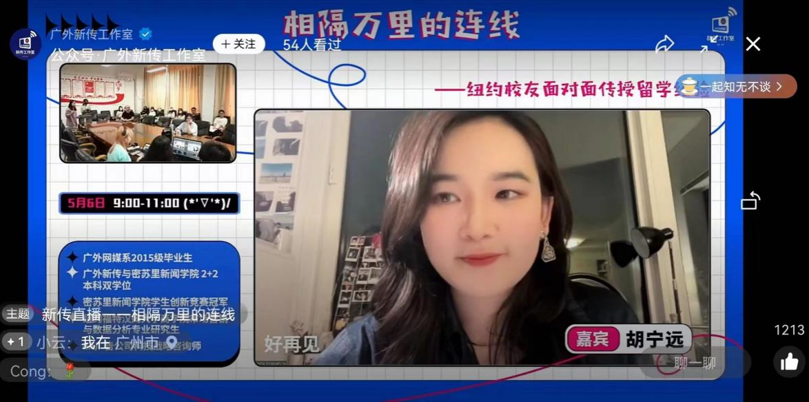 本网讯 5月6日上午,我院网媒系师生与远在纽约的网媒系首届毕业生胡宁远进行了视频连线,我院直播团队对本次连线进行了全程直播。