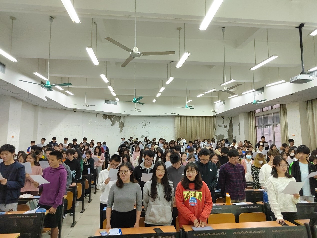 在经过细致的考风考纪学习后,张维老师抽查了两名学生对考试违纪、作弊相关规定的了解。最后全体新生签署《学生考试承诺书》,并进行宣誓。