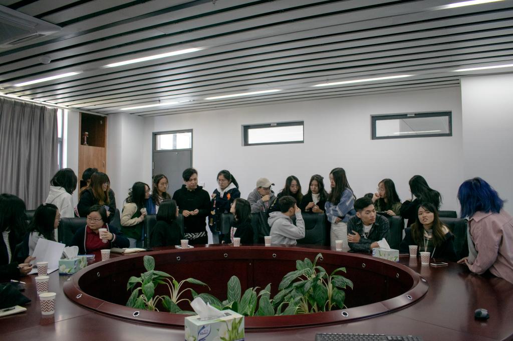 深大传播学院团委书记李桂瑜老师表示,热烈欢迎新闻学院团学师生的到来。“友院互访”是深大传播学院团学每年的重点项目,正值学院“国际短片节”如火如荼开展,新闻学院师生前来现场观摩、实地调研,是一个互相学习借鉴提升的好机会。张维对深大传播学院表示感谢,她说,广外新闻学院与深大传播学院在今年11月“讲好中国故事”传播大赛启动仪式中结缘,双方在工作交流中给与对方极大信任、支持。其实两院团委、学生会学生私下早有许多交流,今天整队赴深大学习交流是学生们的深深期许。她欢迎深大传播团学再次来广外交流。