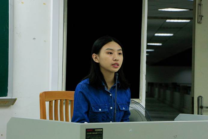 黄岚清以“问答”的形式进行分享。她总结出选题开始前、选题开始后及准备中可能遇到的困难和问题,结合自身经历介绍了解决方法,并且分享了自己在调研能力与表达能力方面的收获。