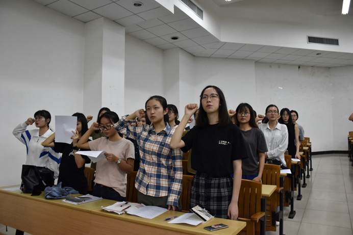 会议结束,黄锐带领全体团学成员庄严宣誓,发起新闻与传播学院学生干部自律承诺。同时,全体学生干部共同签写学生干部自律承诺书。