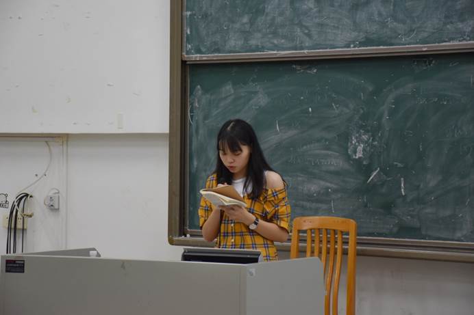 学术部干事、新闻类1803班的代倩作为干事代表发言。代倩认为参加学生会及团学活动十分具有意义。她以个人高中学生会的任职经历为据,提出了个人对于学生会存在意义的理解与看法。
