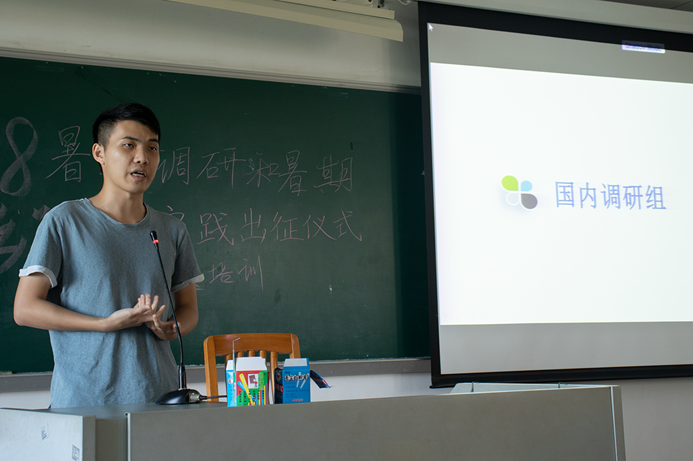 省外调研组代表介绍省外调研的情况。省外调研团队分成四支队伍,分别在北京与西柏坡两地、上海与嘉兴两地、贵州与遵义两地、西安与延安两地,进行一系列关于城市传播、红色文化的调研,并将立足当地情况,以大学生视角将成果展现出来。