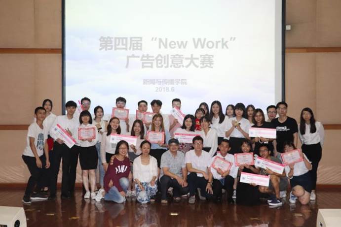 比赛最后评委老师和嘉宾依次为策划类、文案类、平面类、视频动画广播类的获奖作品颁奖,并与全体成员合影留念。