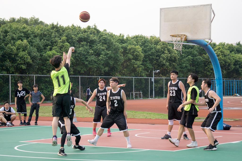 本网讯 3月15日下午,第四届“广外新传艺术联合杯”篮球赛在南校区篮球场拉开帷幕。艺术学院混子咸鱼队凭借稳定的球技发挥和默契的团队配合,早早建立起较大的比分优势,最终以47:40的比分取得本场比赛的胜利。新闻学院播主联队遗憾败北。
