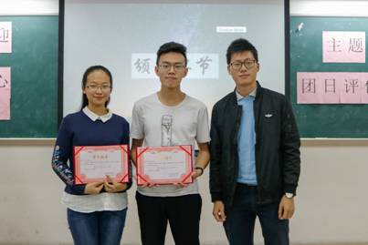 团委书记陈博菲与优秀团日活动奖获得班级代表合影