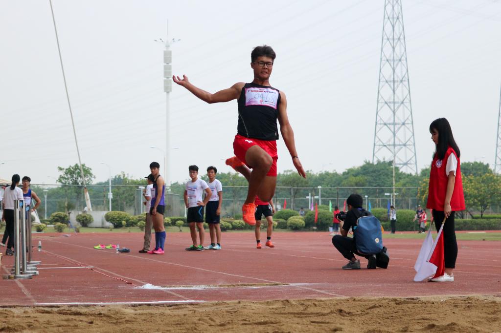 17日下午四时,校运会男子学生组五项全能第二项跳远开始。叶德尔以5米53的成绩获夺得季军。