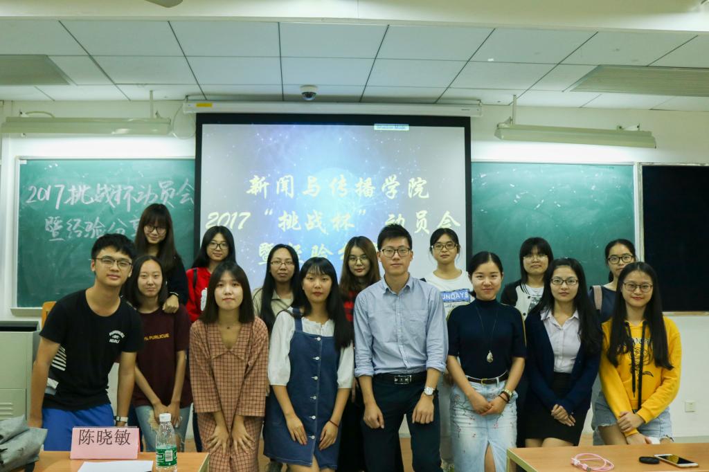 本网讯 10月30日晚上7时,新闻学院挑战杯动员暨经验分享会在F507举行。本次大会邀请我院副院长侯迎忠与三位往届的参赛学生,为今年参赛同学提供参考建议。我院党委副书记黄石胜、院团委书记陈博菲、17级辅导员张维以及我院部分同学也参加了本次分享会。