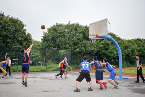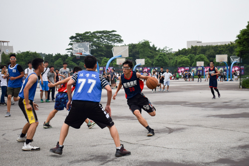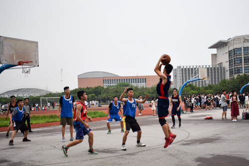 本网讯 5月17日下午,第三届“广外新传艺术联合杯”篮球赛在南校区篮球场继续进行。新传大三联队凭借全场压迫性的防守以及快速而高效的攻守转换,早早建立起较大优势,最终以80:57的比分取得比赛胜利,法学少先队苦吞败果。