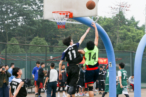 新传大二14号魏乾与艺术大四11号余冰篮下争夺