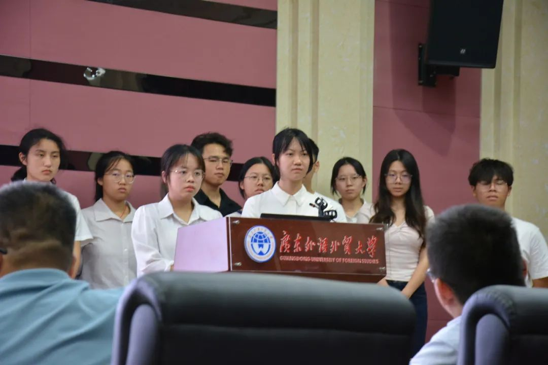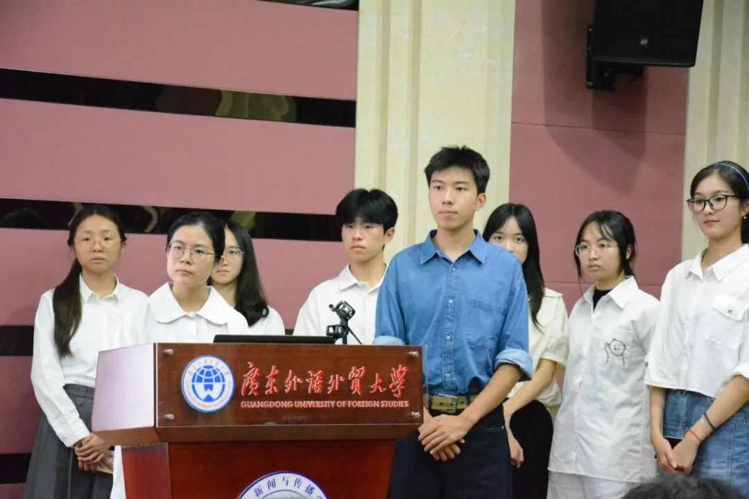 6月19日晚,广东外语外贸大学新闻与传播学院2025年第九届“讲好广东故事”新闻调查大赛暨县级融媒体中心新闻实践活动及青年大学生“百千万工程”突击队行动立项答辩会。由暨南大学教务处处长,新闻与传播学院教授,博士生导师刘涛、广东省新闻工作者协会副秘书长郝光以及广州日报高级编辑毛玉西等老师担任评委,粤融新锋队、粤度沸腾创作组等13支队伍参与,围绕实践项目展开精彩答辩。