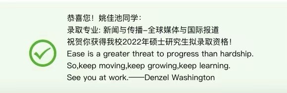 考研,一条漫长且煎熬的道路。从决定考研确定好考研目标,到备考时攻坚克难,再到最终结束初试复试,姚佳池从未选择放弃。最终,她也如愿收获了属于自己的成功果实。
