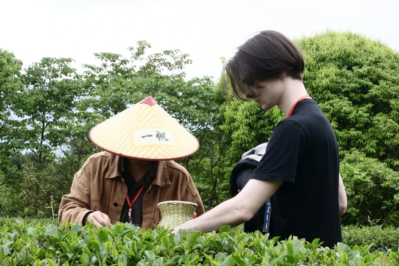 在云雾缭绕的茶园中,留学生们观摩了传统茶艺表演,而后,在当地茶农的指导下,他们戴上斗笠、挎上茶篓,深入茶园体验采茶、炒青、揉捻等制茶工序。来自白俄罗斯的Frantsishak(一王)感慨道:“采茶的新奇体验令人难忘,而学会正统的泡茶方法更是意外之喜。”来自塔吉克斯坦的Orifjon(罗永丰)表示,此次茶文化体验给他留下了深刻印象,他计划回国后向亲友介绍中国茶文化,并邀请他们品尝中国茶,让更多人领略中国茶文化的独特魅力。