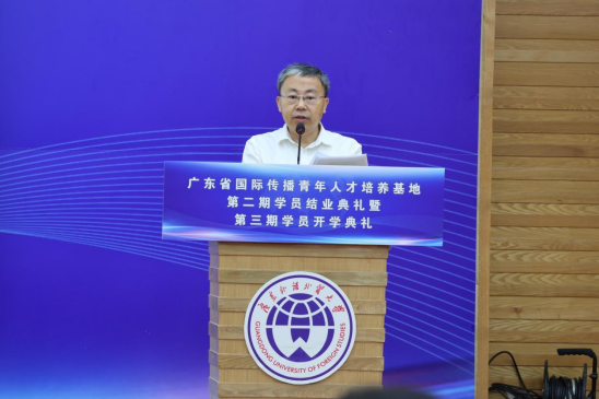7月7日,广东省国际传播青年人才培养基地第二届学员结业典礼暨第三届学员开学典礼在我校举办。广东省委宣传部二级巡视员陈松就本次培训进行指导、提出要求,我校党委常委、副校长申明浩代表学校致辞。典礼由我校新闻与传播学院院长侯迎忠主持。