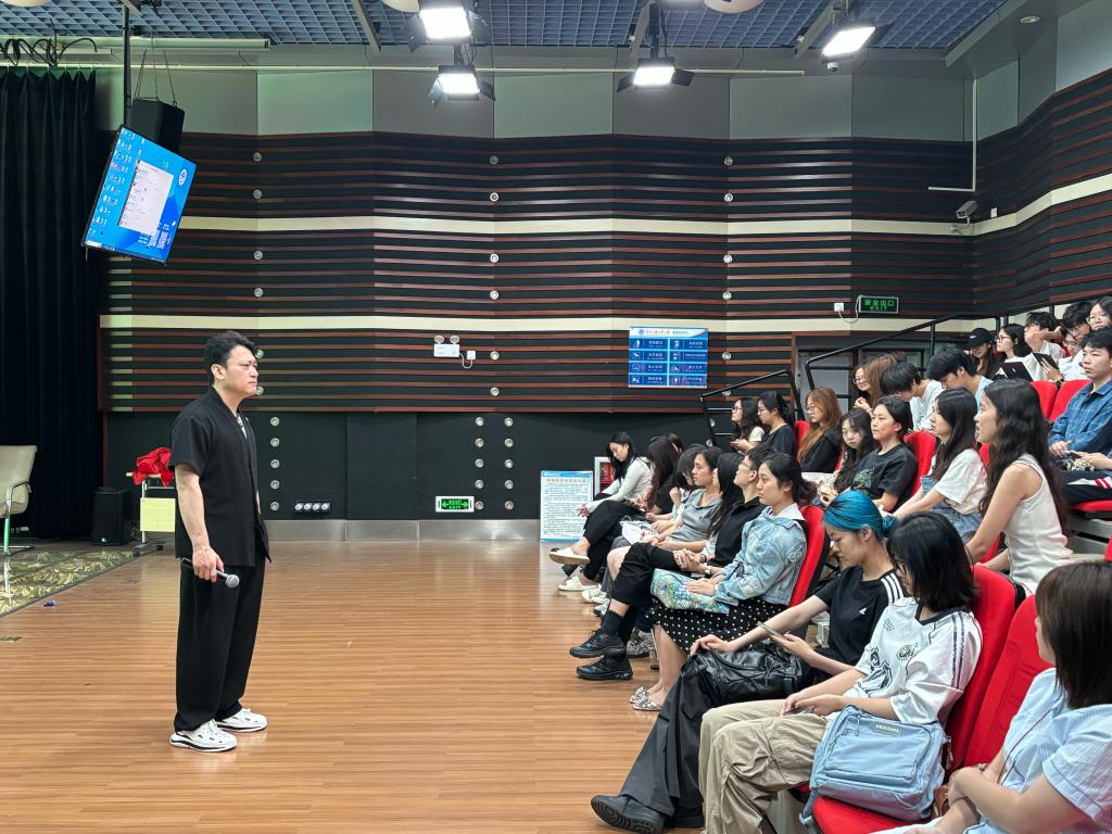 2025年5月28日上午,知名配音演员、配音导演李龙滨于广东外语外贸大学演播厅为广外新闻与传播学院师生带来了一场题为“AI来势汹汹,艺术语言如何破局”的讲座,与同学们共同探讨人工智能时代下艺术语言面临的挑战与机遇。