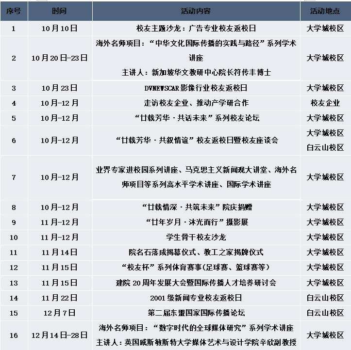20周年院庆系列活动安排表